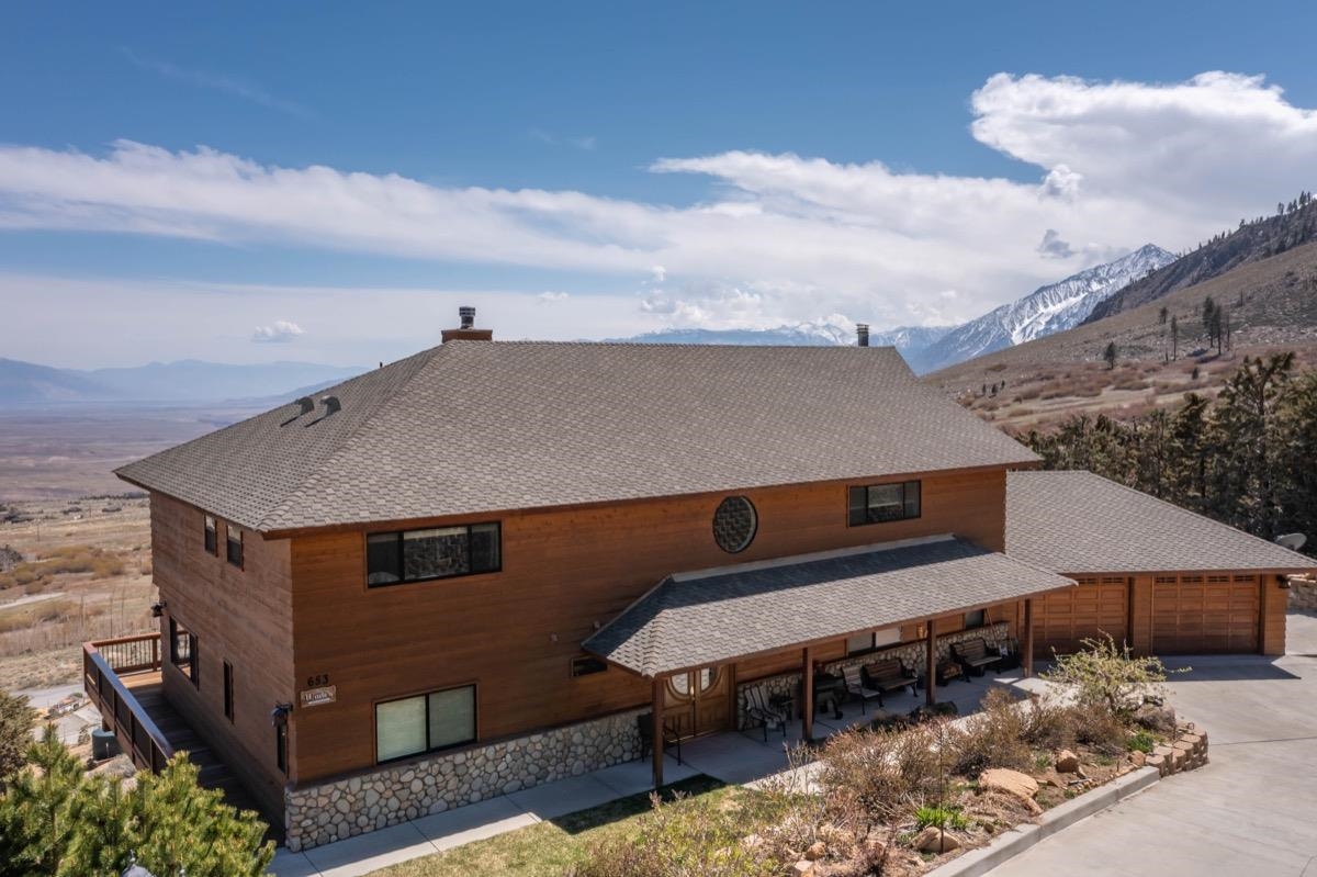 Best buy in Inyo/Mono counties! Priced to sell! Only 30 minute scenic drive to Mammoth & World Class Skiing. Climbing, fishing and hiking minutes from the front door! Stunning views from this Quality Custom Home. Enjoy sunrises over the White Mountains, spectacular night skies & Alpen glow in the evenings. Amazing sunsets are a daily occurrence. The home is situated at the base of the Eastern slopes of the Sierra Nevada Mountains and also boasts views of Mt. Tom, up canyon towards Bishop Pass and all of the Owens Valley. This well thought out, spacious home is filled with natural light and views from every room. The home features include detailed finish work, hard wood oak floors, custom doors, Wolf appliances, walk-in pantry, 2 tankless water heaters, FAU and passive solar. Too many features to mention! This open floorplan is wonderful for gatherings & get togethers. A convenient en-suite bedroom is located on the main/1st floor just off the Livingroom. The wrap around deck, built with hard wood (low maintenance), can be accessed from either the living room, den or garage area. The primary bedroom is a 'suite' that accommodates half of the 2nd floor. It features a sitting area w/a fireplace, an attached office/extra room, large walk-in closet as well as a spacious primary bathroom, jacuzzi tub, separate shower & double vanity. The rest of the 2nd floor has 2 additional bedrooms w/en-suite baths & laundry room. The bonus room with private entry is below the main part of the home.Plumbed and has 220 volt for an easy conversion to an ADU or Studio?There is also a large basement for storage or workshop. These are the Original owners that built this quality home in 2007 as their 'forever' home and have meticulously maintained it over the years. Priced way below replacement costs. This is an amazing opportunity to make home yours! Finally - open the door to a place you and your family will love to call home. #newhome #homesforsale . Call to view this amazing home.